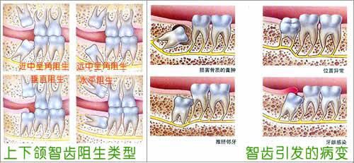 1、侵犯邻牙:通常患者不自知,而由牙医以X光诊断得知,通常智齿萌发的空间不足,而会倒在第二大臼齿上,因而造成第二大臼齿清洁不易,甚至是牙齿部分吸收的现象,造成患者不 或牙疼。
